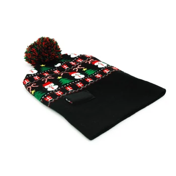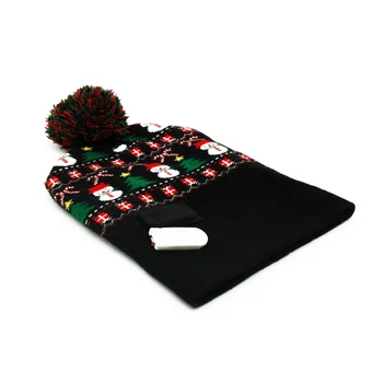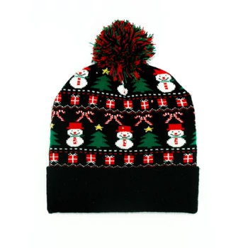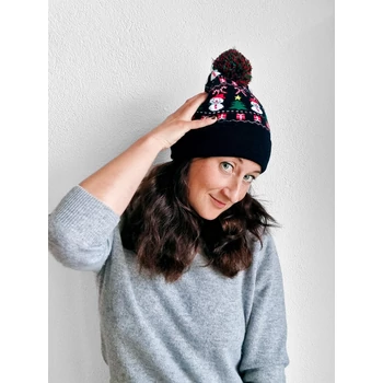 Legyél te a karácsonyi hangulat megtestesítője ezzel a vidám, világító téli sapkával! A fekete alapon hóemberekkel, karácsonyfákkal, ajándékdobozokkal és cukorpálcákkal díszített minta már önmagában ünnepi hangulatot áraszt, a beépített színes LED fények pedig még különlegesebbé és mókásabbá teszik. A sapka tetején piros-zöld pompon teszi teljessé a játékos megjelenést. Kényelmes, rugalmas anyagának köszönhetően jól illeszkedik, és melegen tart a hideg téli napokon. A világító funkcióhoz szükséges elemek cserélhetők, így hosszú ideig élvezheted a fényjátékot. Termékjellemzők: